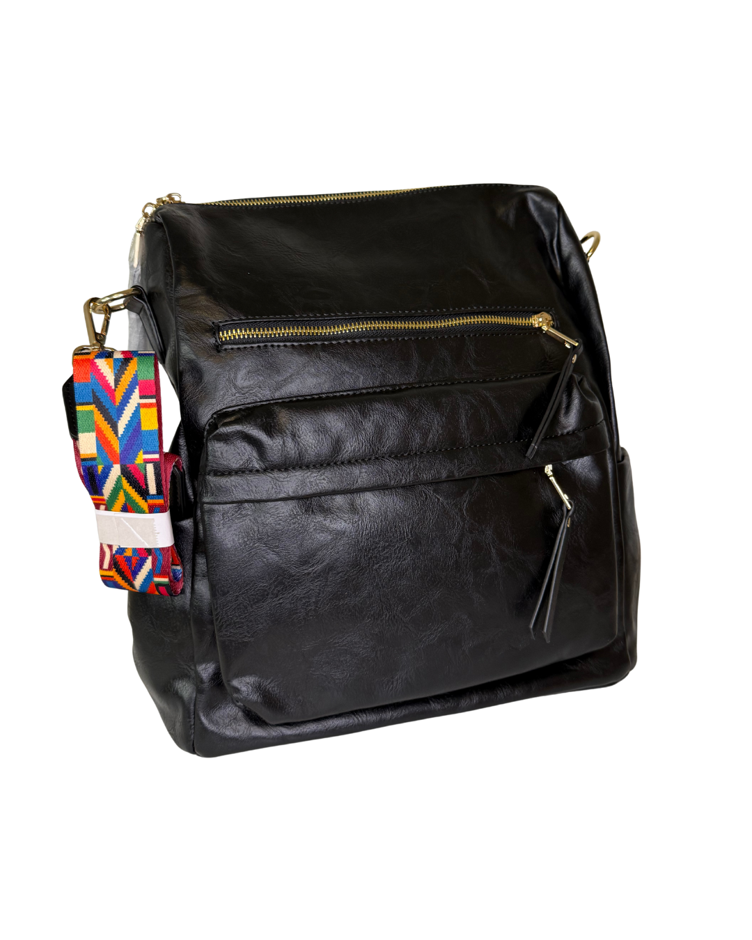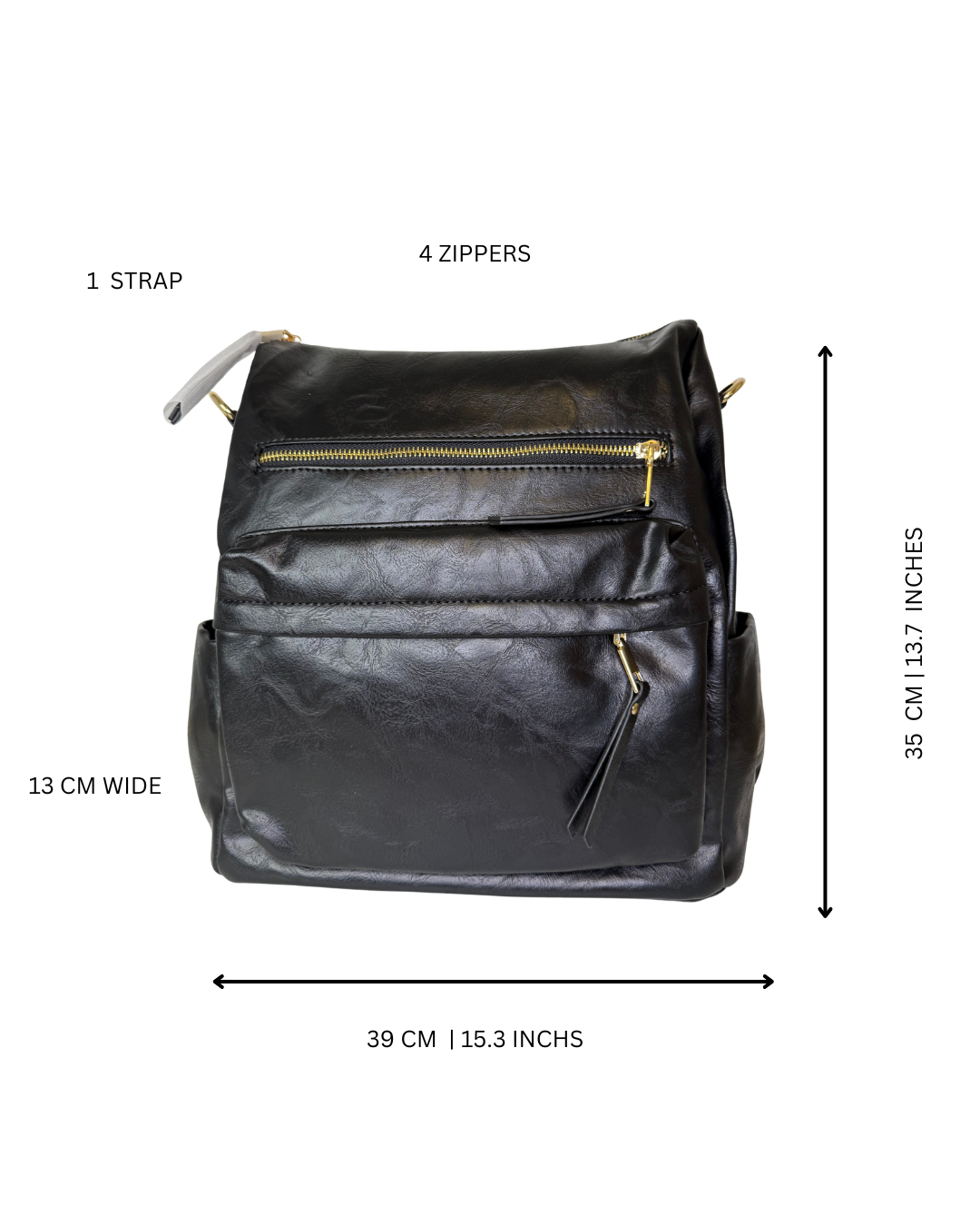 Elevate your daily travel with our Black Multi-Zipper Convertible Shoulder Bag, designed for the modern woman. This versatile bag easily transitions between a backpack and a shoulder bag.