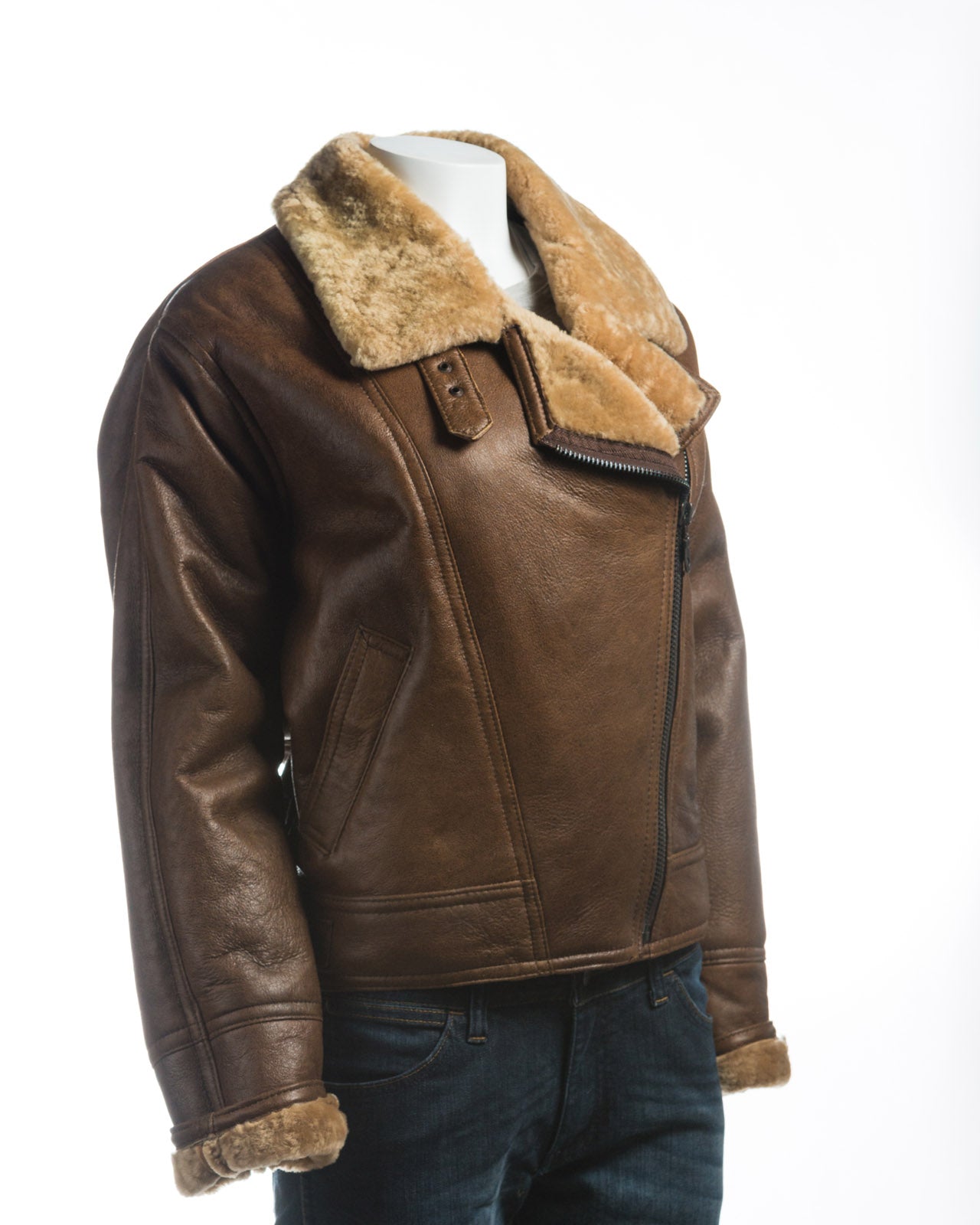 This is the iconic double breasted asymmetric zipped sheepskin flight jacket, crafted from a single piece of supersoft and durable sheepskin into a form fitting, feminine creation. This design has a slightly roomier fit across the back, compared to the vertical zip versions (Cornelia). A strong angled zip rises to the wide fleeced collar that can be held in a high neck position with a strap and buckle fastener. You will also find the inside fleece trim at the turn up cuffs. There are two angled zipped pockets at the waist. A classic and timeless gem that will only get better with age. This is a loose fit coat. |