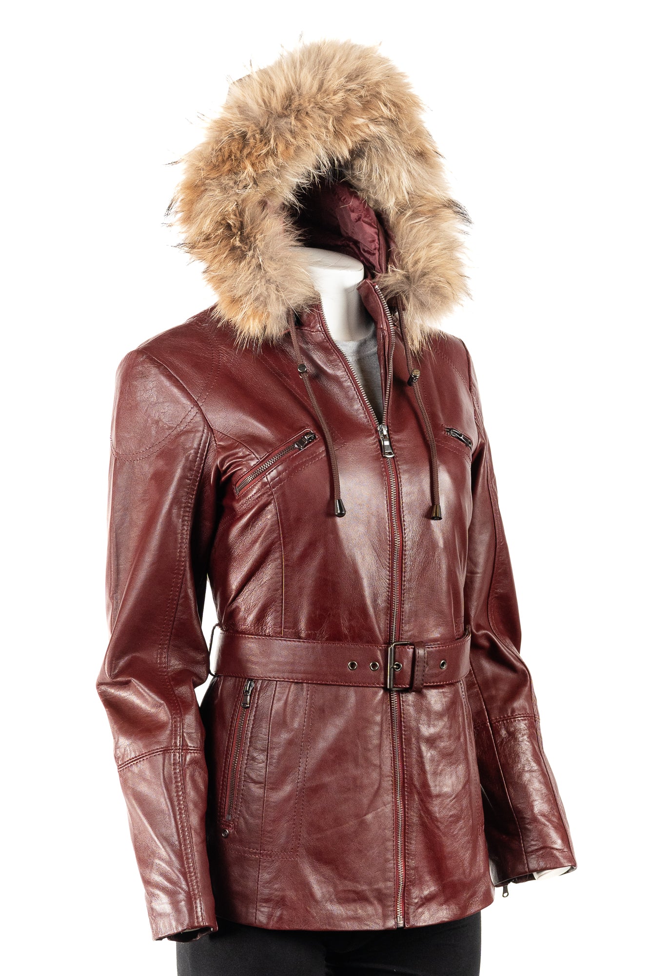 Special Order Skin - This is a beautiful and versatile belted parker style coat with a fur-trimmed detachable hood, fashioned from soft and supple sheep aniline. A vertical zip closure rises to a small standup collar containing hidden zip fastening for the removable hood. The coat features two zipped pockets at the hips and a further two at the chest. Cuffs are also zip adjustable to accommodate gloves in the colder months. A stylish inter-seasonal all rounder. This is a slim fit jacket. |