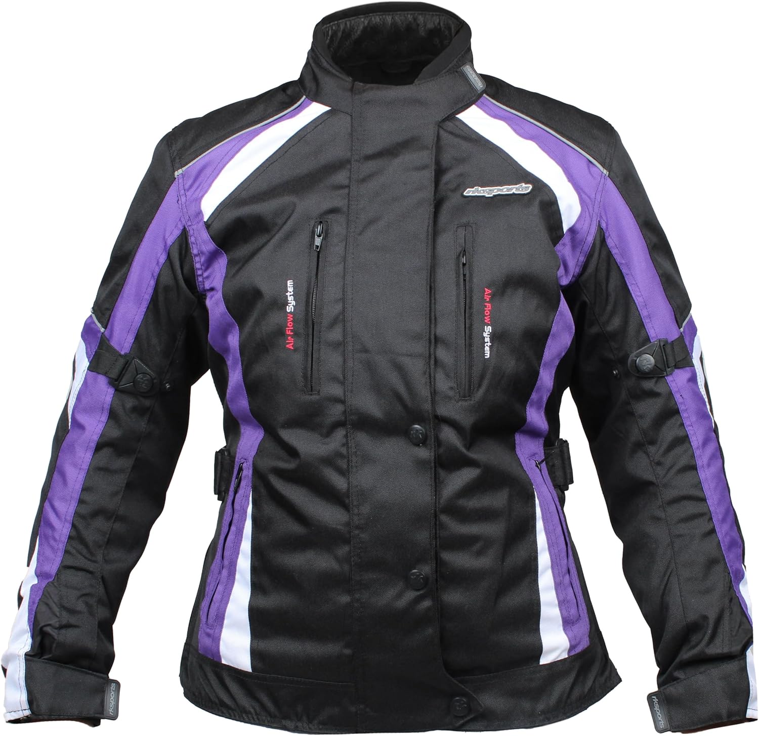 This ladies RK Sports waist length motorbike jacket is essential for any bike enthusiast. It has CE approved removable armour at the elbows, shoulders and back, also thermal detachable lining for the summer months with reflective white stripes along the front, back and sides. The waist and sleeves are fully adjustable for a perfect fit, the jacket has 4 main pockets on the front - 2 zipped at the waist and 2 vertical on the chest. The jacket is made from breathable cordura, it is waterproof and can be done up with a front central zip and poppers to fasten down.