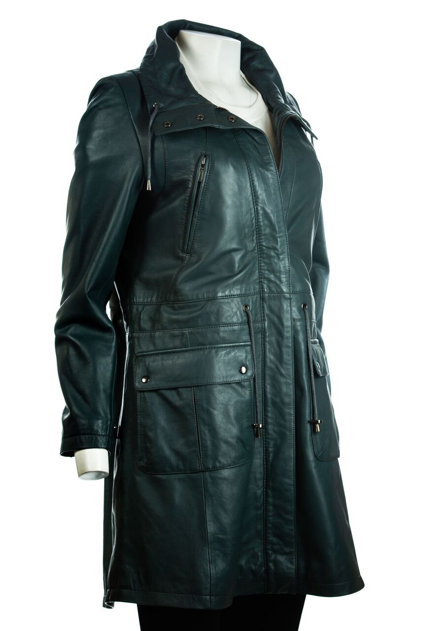 This a superbly soft and stylish parka coat. Almost to the knee in length, it features a fish tail design at the rear. The covered central zip fastener rise to a drawstring collar. You will also find a drawstring at the waist that can be used to gently gather the A line shape. Two zipped pockets at the chest compliment the two further deep flapped pockets at the hips. Cuffs are adjustable with stud fasteners. Versatility and style; a winning combination.