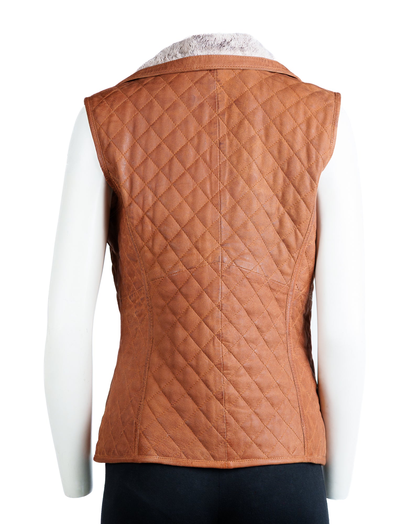 Made from soft buffed leather, this fashionable and smart gilet makes for the perfect addition to any winter wardrobe. It has asymmetrical zip up front that can be done up to the top collar to help keep your neck warm. There are two zipped pockets at the waist and the interior is lined with super soft faux fur. This is an incredibly complimentary design - it is fitted and feminine.