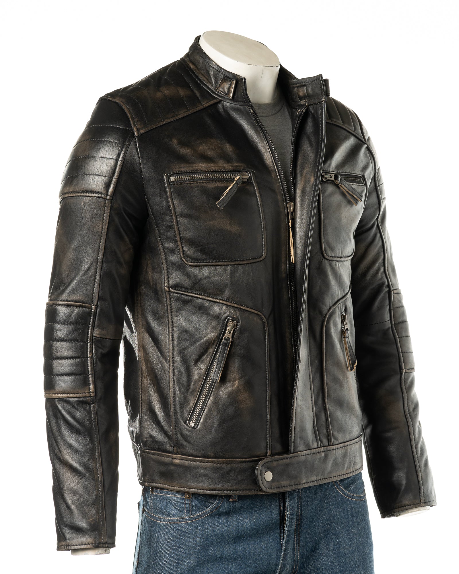 This racer style leather jacket is beautifully crafted from soft and supple Sheep nappa leather. A strong central metal zip on the front does up to a stand up collar that can be held in place with a buckle, on the bottom there is s press stud to ensure a tailored fit. Secure your possessions in the two zipped hand pockets either side and in the two more on the chest. There are also two pockets inside this fully lined leather jacket - one zipped to secure your possessions. A joy to wear in all seasons.