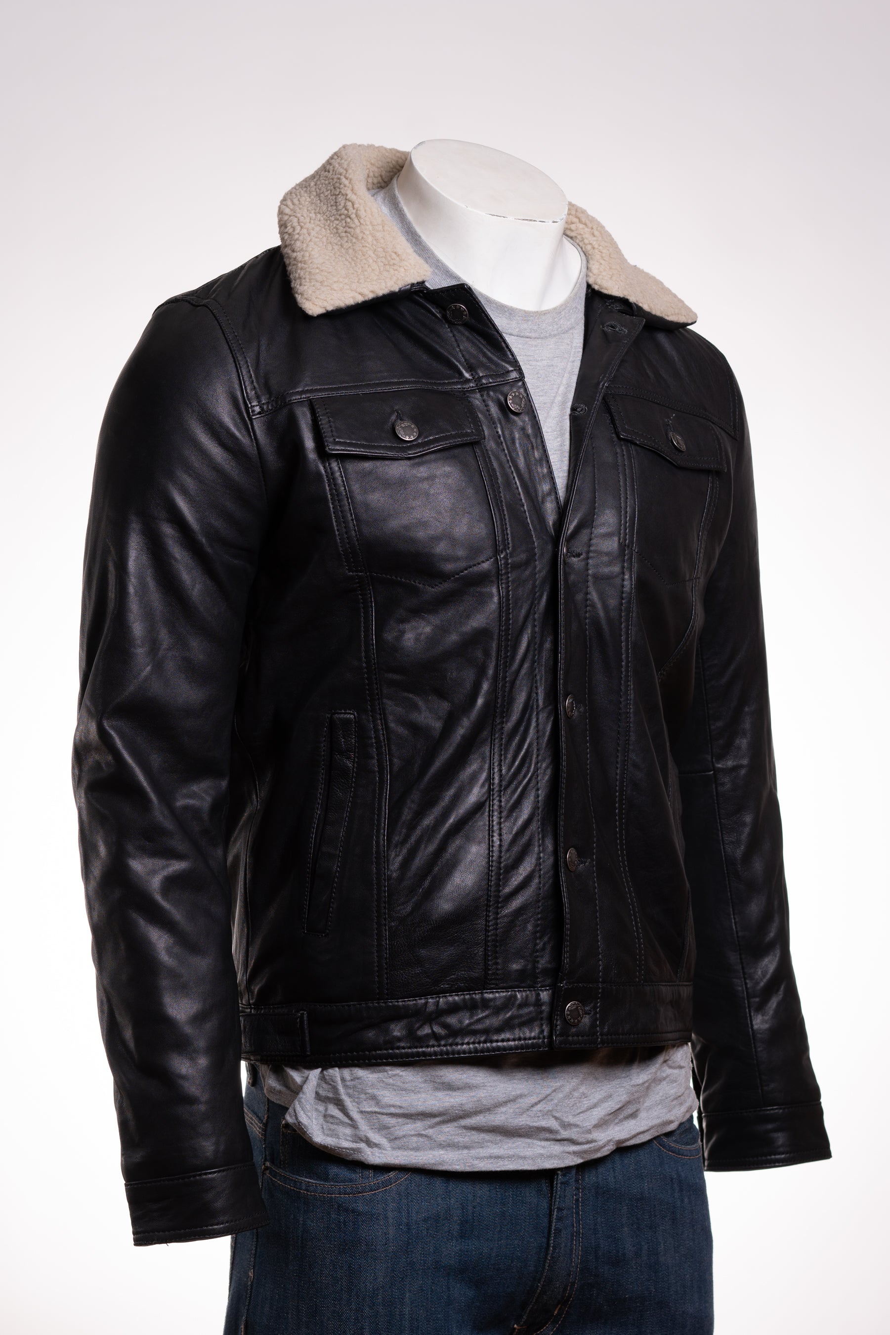 A casual but sleek version of the classic denim jacket. This is made from soft and comfortable sheep nappa. It does up with 6 brass buttons, you'll find two buttoned pockets on the chest and two angled at the waist and a removable Sheepskin collar. There's a buttoned adjustable waistband for a perfect fit and in keeping with the original look. Inside the jacket is fully lined with a further two pockets.