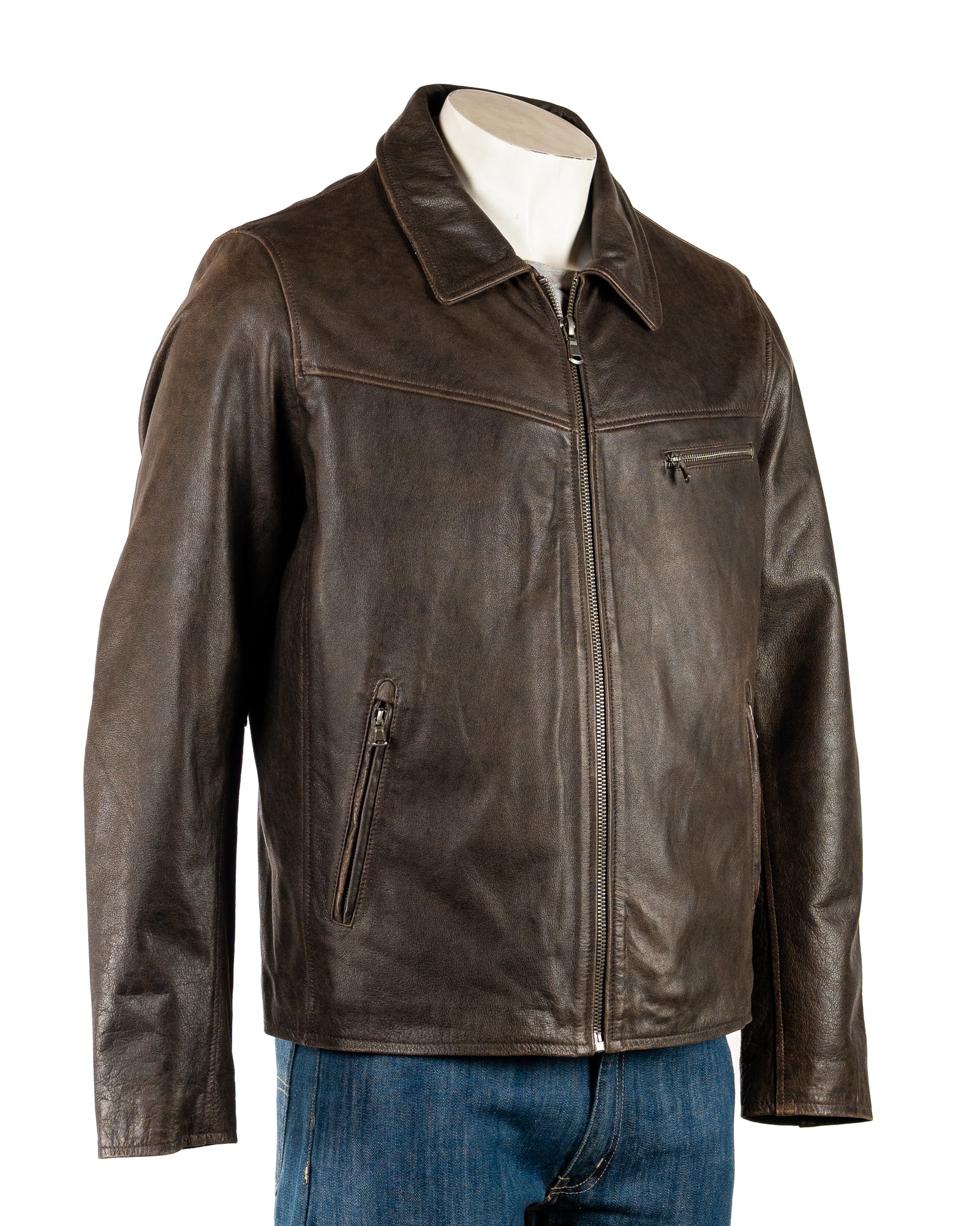 This classic mens Harrington jacket is made from durable and comfy cow hide. it's timeless design compliments smart or casual attire and can be worn the year round. it has a sturdy steel central zip that leads to a shirt style collar, two angled pockets at the waist and a zipped pocket on the chest. Additionally, it features two interior pockets - one open and one zipped - and a soft lining to add extra chicness to this fashionable jacket.