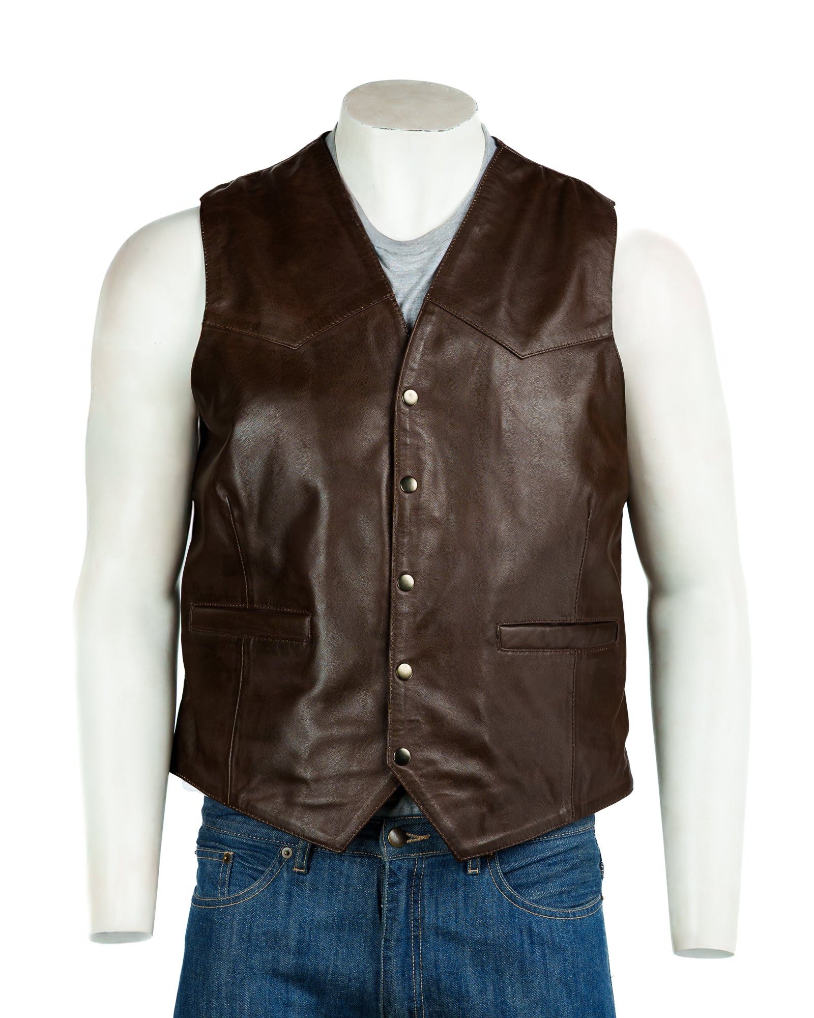 A smart and tailored full leather press studded waistcoat. It is crafted from the softest sheep nappa. The panels on the chest compliment the male figure and there are two pockets at the waist with a further interior pocket. At the back you'll find a buckle tab adjuster for a perfect tailor made fit.